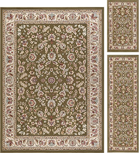 Green 5 ft. x 7 ft., 20 in. x 60 in., 20 in. x 32 in. Traditional Area Rug
