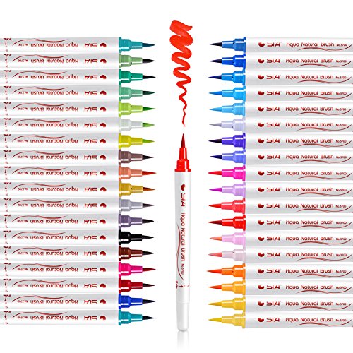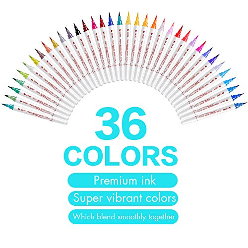 Watercolor Brush Marker Pens - Brush Tips - 36 Colors - Best for Coloring Book Calligraphy illustrations