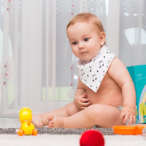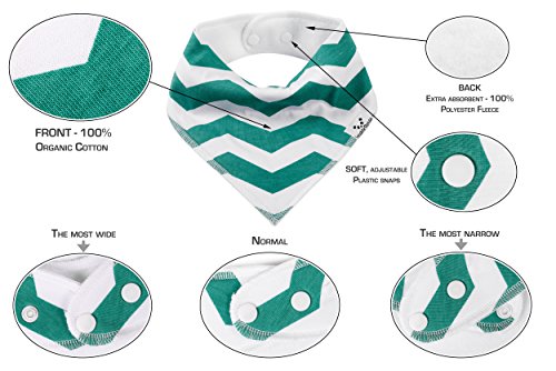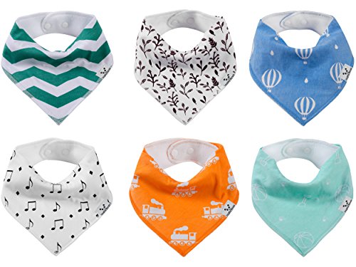 -. Feature : HIGH QUALITY AND BEAUTIFUL DESIGN FOR BOYS AND GIRLS - Our 6 Pack Gift Set fits boys and girls perfectly. We made this set unisex because we want every modern baby to enjoy our soft, absorbent and comfy dribble bibs. / SOFT ORGANIC COTTON AND SUPER ABSORBENT MATERIAL - Is your little baby a drooling machine? We know drooling is annoying for babies and for parents too and that's why we created a set of 6 bandana bibs made from 100% organic cotton on the front which has high absorption capacity to restrict the salivary glands from penetrating the bib and 100% polyester fleece on the back which resists moisture and prevents it from passing through to your baby's clothes. / ADJUSTABLE SIZES - NICKEL-FREE SNAPS (NOT VELCRO) - Each baby bib comes with 2 nickel-free clothing snaps to allow you to adjust the size of the bandana drooling bibs for a perfect fit. Neck size can be adjusted to fit newborns and toddlers with ages ranging between 3 and 24 months. The snaps are secure and easy for parents to snap on and off, but babies won't be able to pull these bibs off. / PERFECT BABY SHOWER GIFT SET - Our bib sets are perfect as baby shower gifts and not only. Every new parents or grandparents would like to receive a gift set like this. Our bibs look great on every child's neck, because they are gender neutral and match perfectly with a wide range of colorful clothing. This gift will not only be a beautiful one, but also a practical one. Every baby will be happier to wear a soft and comfy bib and to have dry clothes, instead of wet ones. / 100% CUSTOMER SATISFACTION GUARANTEED - We are sure that our product will meet your expectations, and if you aren't absolutely satisfied, we will refund your money with no questions asked. There's nothing to worry about, add it to your cart today!