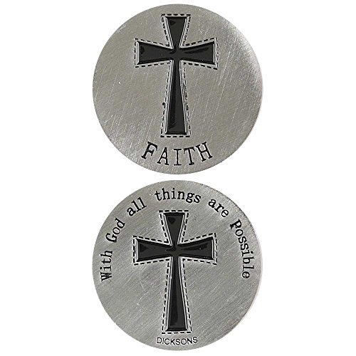 Faith All Things Possible Cross Antique Silver Round Metal Inspirational Hand Held Pocket Stone