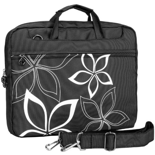 - Feature : Main dual zippered compartment: 10" H x 14" W x 1.5" D / Front zipper compartment: 8" H x 14" W / Rear Velcro pocket: 8" H x 14" W / This unique, floral design laptop bag is perfect for carrying your favorite computer. / Padded carrying handles and an adjustable, removable shoulder strap.