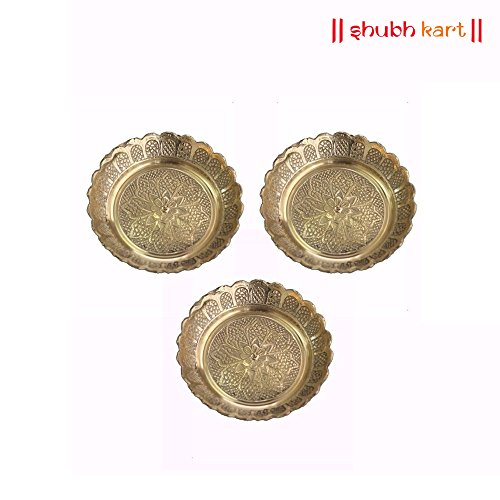 Shubhkart Nakshi Plate (Pack Of 3), Copper Handmade Indian Plate for Puja