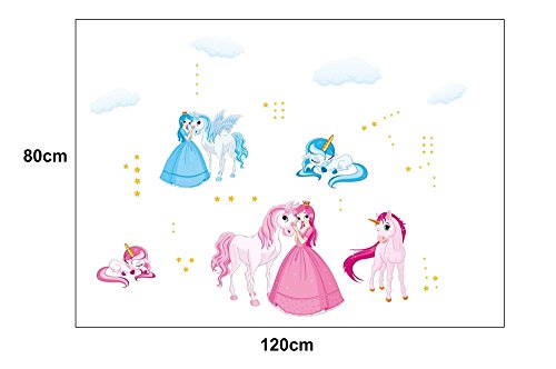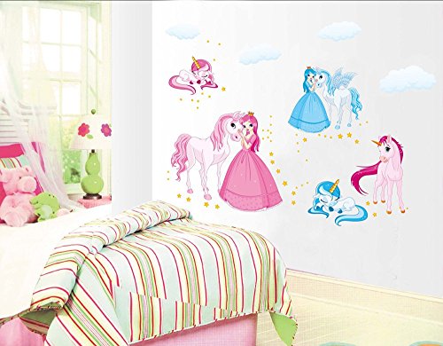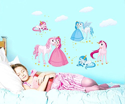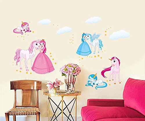 ufengke® Cartoon Princess and Unicorn Wall Decals, Children's Room Nursery Removable Wall Stickers Murals