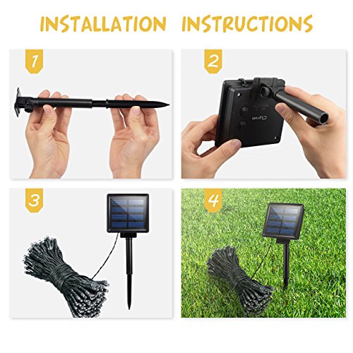 - EASY INSTALLATION: No Extra cable or battery required for the decorative string lights. The solar panel with solid plastic stake will plug into earth easily, and is better to charge under the sunlight.