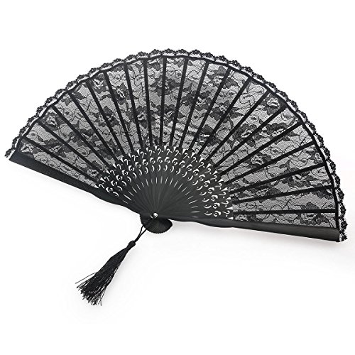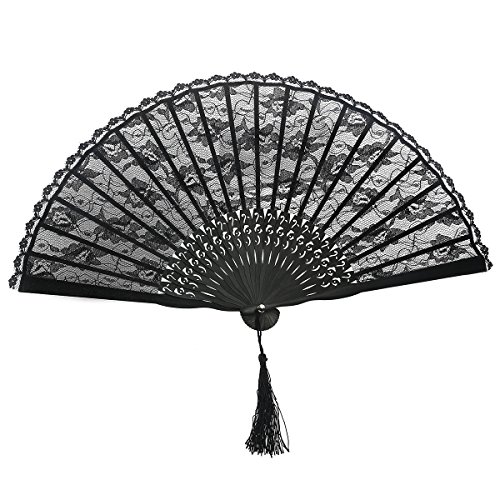 Tinksky Spanish Victorian Hand Fan for Wedding Party Favor Fancy Dress (Black)