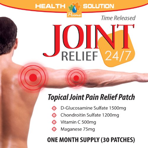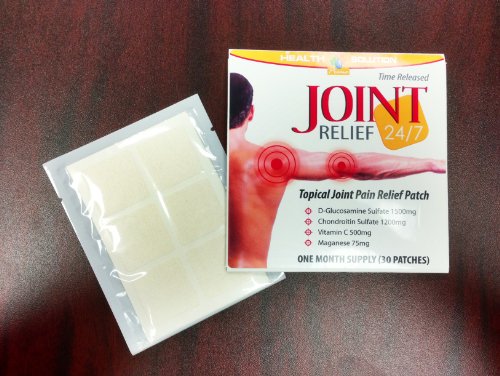 -. Binding : Health and Beauty -. Brand : Health Solution P.R.Ime -. EAN : 0039517107568 -. Feature : Glycosaminoglycans are a major component of joint cartilage / Its use as a therapy for osteoarthritis appears safe / 24/7 Joint Relief -. Label : Health Solution P.R.Ime -. Manufacturer : Health Solution P.R.Ime -. PackageQuantity : 1 -. ProductGroup : Health and Beauty -. ProductTypeName : HEALTH_PERSONAL_CARE -. Publisher : Health Solution P.R.Ime -. Studio : Health Solution P.R.Ime -. Title : Joint Pain Relief 24/7 Topical Patch with D-Glucosamine Sulfate and Chondroitin Sulfate 30 Patches - One Month Supply -. UPC : 039517107568
