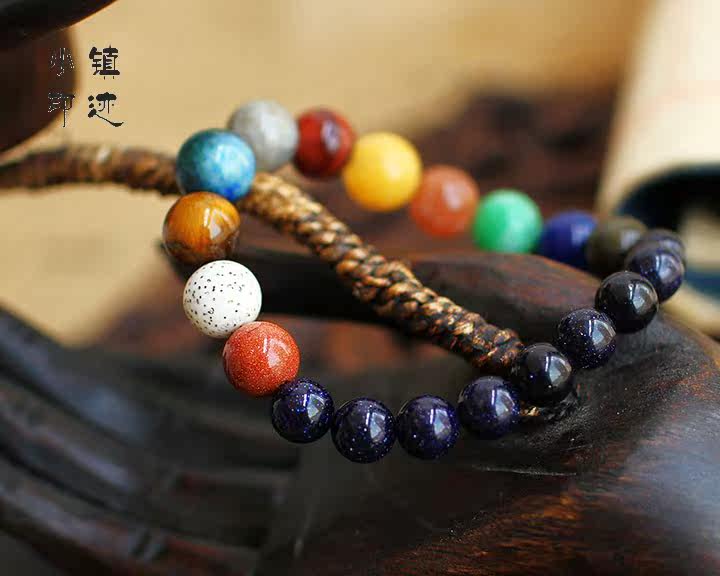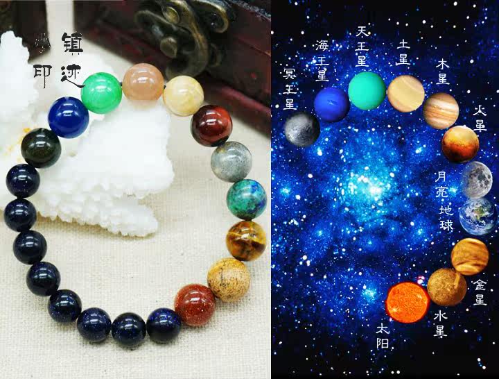 Note: This bracelet material that planet. Sun: Gold sand. Mercury: Drawing stone. Venus: Yellow Tiger Eye. Earth: Gold Green Phoenix Stone. Moon: gray moonstone. Mars: red tiger eye stone. Jupiter: clam colors. Saturn: Orange Moonstone. Uranus: green and white chalcedony. Neptune: dark blue chalcedony. Pluto: Sands obsidian. Sky: blue gravel.
