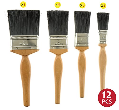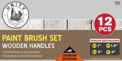 Unity 12-Piece Paint Brush Set -Long Pro Style Wooden Handles - Pure Bristle And Synthetic Filament Blend - Interior Exterior - DIY Value Pack