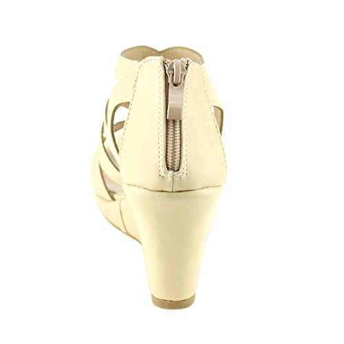 Binding : Apparel Product Description Add some height to your casual yet comfy look with these platform wedge sandals! Features stitching accents, rear zipper closure, lightly padded insole, espadrille platform wedge heel, open toe and strappy front construction. ~Material: Faux Leather (man-made) ~Sole: Synthetic Measurements: Heel height: 3" w/ 0.5" platform (approx) 0
