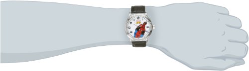 Item model number: W000532 Batteries: Lithium Metal batteries required. (included) Date first listed on Amazon: March 11, 2013 Brand, Seller, or Collection Name:Marvel Model number:W000532 Part Number:W000532 Model Year:2013 Item Shape:Round Dial window material type:Mineral Display Type:Analog Clasp:Buckle Case material:Metal Case diameter:43 millimeters Case Thickness:10 millimeters Band Material:Synthetic leather Band length:Men's Standard Band width:22 millimeters Band Color:Black Dial color:White Bezel material:Metal Bezel function:Stationary Item weight:6.40 Ounces Movement:Analog quartz Water resistant depth:99 Feet
