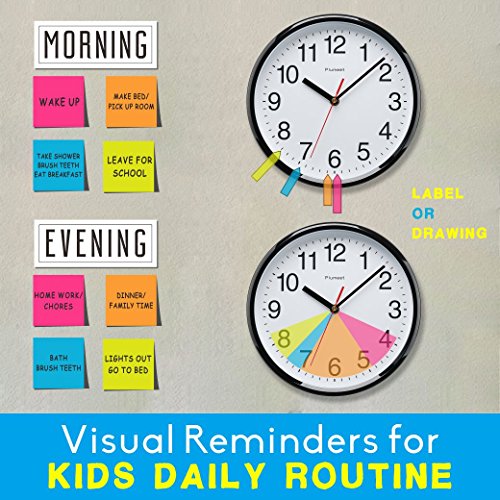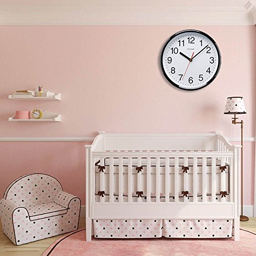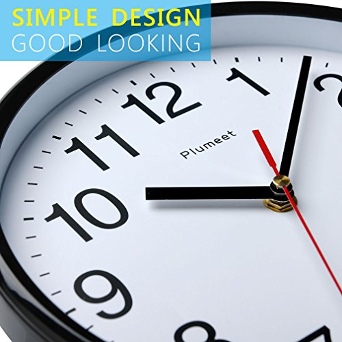 · Sleek and sample, the Plumeet wall clock is distinguished by its modern and simple design. · Nonstop Sweep Quartz movement is totally quiet. this gives you some quiet and serene environment to focus on your work or enjoy an entire night of undisturbed rest. · A simple yet bold look with a black plastic frame and a traditionally circular silhouette. The quartz movement helps you keep track of your day more accurately. · For accurate viewing, the clock incorporates a black hour minute hand, and as well as a red second hand with a white background and black numbers to offer additional clearness. · Installation is a snap. Simply hang the clock in the desired location using the hook provided. · Made from lightweight US sourced ABS plastic and has in a weather-resistant case, lens, and dial. · Add one AA battery to the clock, and it is good to tick-away, suitable for any room at home, work or even the classroom, the black shell will spruce up any room's stylistic theme, for example, your kitchen, lounge, and room, family room, meeting room or lounge area.
