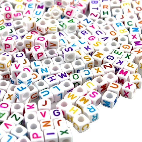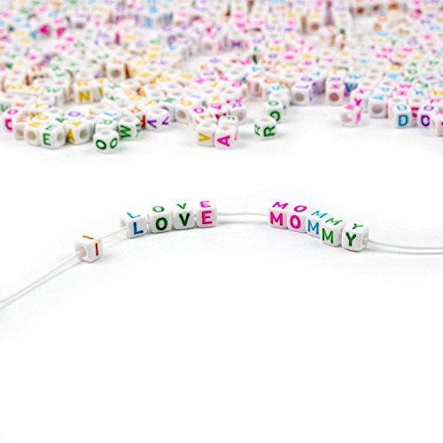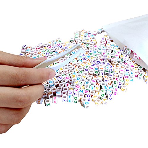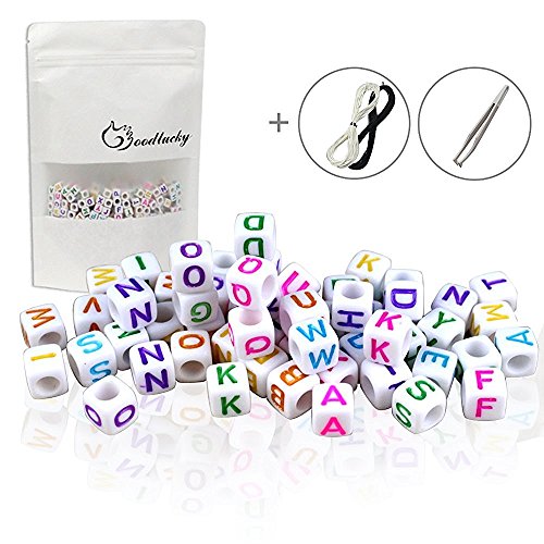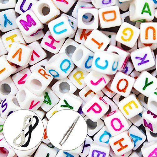 Goodlucky 600 Pcs Letter Beads with 1 Pair of Tweezers 1 White and 1 Black Cord White Alphabet Beads Mixed Color Alphabet "A-z" Cube Beads for Jewelry Making for Kids DIY Bracelets Necklaces