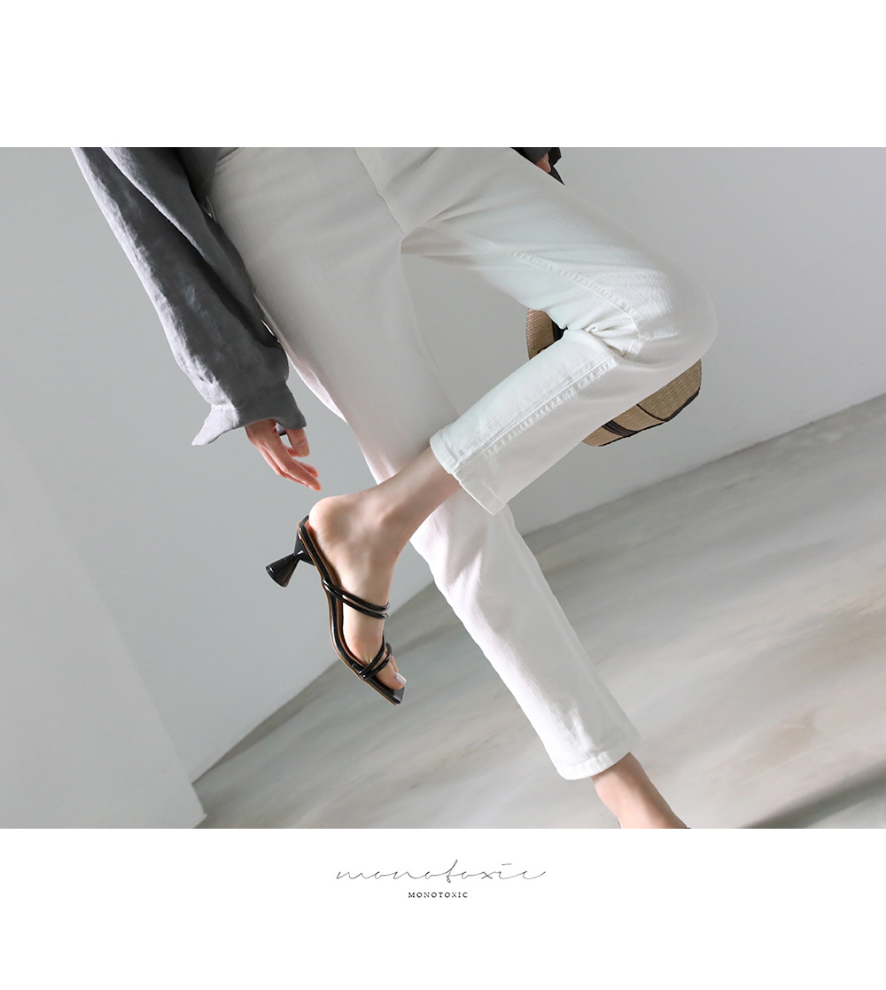 Unique strap mule. 유니크한 실루엣의 뮬입니다.
