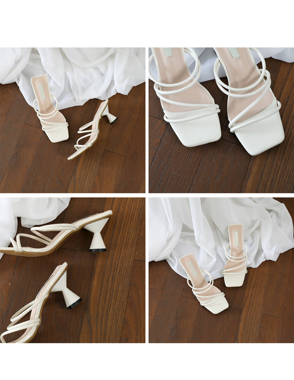 통통한 스트랩라인이 독특하며 특히 모래시계같은 모양의 굽이 굉장히 디자이너틱합니다.