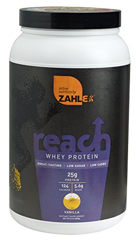 -. Binding : Health and Beauty -. Brand : Advanced Nutrition by Zahler -. Feature : Whey protein has a fast absorption rate , which means not only does it help build muscle, but it also helps repair muscle immediately after a workout / Provides all nine essential amino acids necessary for our bodies / Can be used as a meal replacement / Provides 25 grams of protein and 5.6grams of BCAA's per serving / Delicious tasting Vanilla flavor that mixes with your favorite beverage and is naturally sweetened with Stevia -. Label : Advanced Nutrition by Zahler -. Manufacturer : Advanced Nutrition by Zahler -. ProductGroup : Health and Beauty -. ProductTypeName : HEALTH_PERSONAL_CARE -. Publisher : Advanced Nutrition by Zahler -. Studio : Advanced Nutrition by Zahler -. Title : Zahlers Reach, Whey Protein Shake powder, advanced formula for Lean muscle build, all-natural weight management product, naturally sweetened and flavored, Certified Kosher, #1 best great delicious tasting Vanilla Flavor