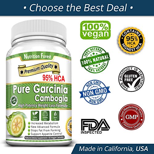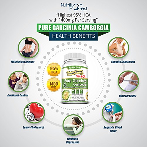 Studio : Nutrition Forest Publisher : Nutrition Forest Binding : Health and Beauty Product Description Why Nutrition Forest Pure Garcinia Cambogia with 95% HCA ? Pure Garcinia Cambogia is a pumpkin shape fruit which exclusively is indigenous to South Asia. The rind of the fruit contains Hydroxycitric Acid (HCA), which helps in controlling weight. Knowing the importance of HCA, we use highest 95% HCA with 1400mg tablets serving not just 50%, 60% and 85%. With higher amount of HCA these tablets can be better for weight management than tablets having low value of HCA. Each serving of 1400mg tablet contains no artificial colors or ingredients and manufactured in FDA registered laboratory. HCA helps in improving serotonin level which leads to appetite suppression. A study by Georgetown University Medical Center showed that HCA can be beneficial for lipid metabolism. Daily supplementation with Pure Garcinia Cambogia Extracts can suppress appetite, prevent craving. Nutrition Forest has ensured to follow recommended guidelines, set forth by the most famous dietitian nutritionist and above all our products are manufactured in FDA Inspected Facility under Good Manufacturing Practices (GMP). Another benefit of our tablets is,they are free from milk lactose, soy, gelatin, yeast and fish because these are not required in manufacturing of tablets of Pure Garcinia Cambogia Extracts. 0