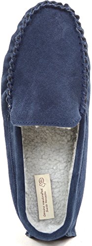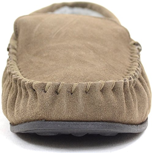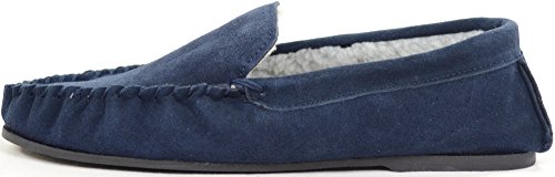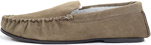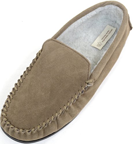 Product DescriptionMens Berber Fleece Lined Moccasin Slipper with Non-Slip Rubber Sole. Berber Fleece Lined Moccasin. Suede Outer Finish. Non-Slip Rubber Sole for Comfot and Grip. Colors - Taupe Navy0