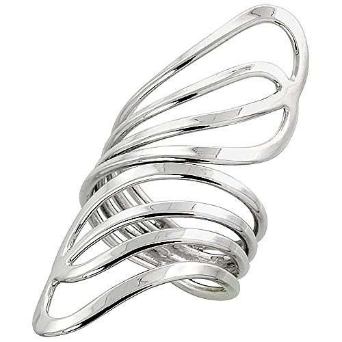 -. Title : Sterling Silver Freeform Wire Wrap Ring Handmade, 2 inch long, sizes 6 - 10
