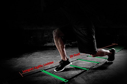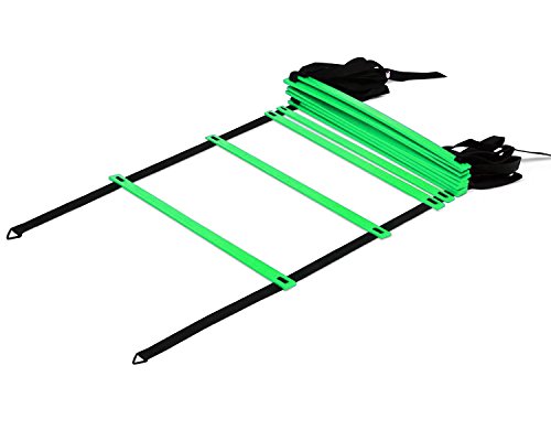 -. Feature : HEAVY DUTY LADDER designed to last for years / 15 inches from rung to rung with DURABLE NYLON STRAPS / 20-foot long training ladder / ADJUSTABLE FLAT PLASTIC RUNGS for safety / Carry bag to keep it organized