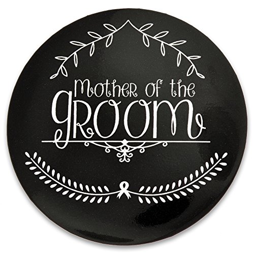 Studio : PinMart Publisher : PinMart Binding : Toy Product Description Our Mother of the Groom Button is 2-1/4" round with a durable and glossy black color front side featuring an elegant scripted "Mother of the Groom" and pretty graphics in white. The back side has a silver metallic backing with a safety pin back for securing the button to your favorite garment. Each is individually poly bagged. A perfect gift for the bride to give to her soon-to-be mother-in-law on the day of the bachelorette party, rehearsal dinner, wedding ceremony or wedding reception. This also makes a great decorative "bow" or "gift topper" for a personal thank you gift at the Bridal shower! Purchase the matching buttons to make perfect party favors and great conversation pieces. 0