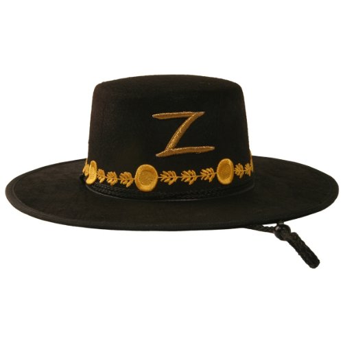 -. Feature : Officially licensed Deluxe Zorro hat / Black fabric with gold colored details / One size fits most adults / Look for coordinating Zorro costumes and accessories by Rubie's / From Rubie's Costume Company, celebrating over 60 years offering an extensive line of costumes for year-round fun