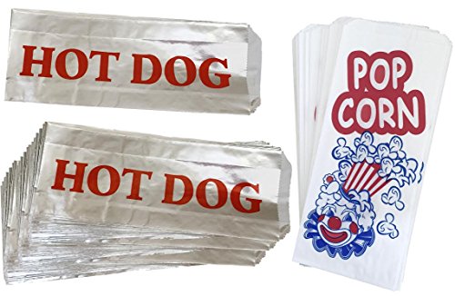 - 50 Popcorn bags and 50 hot dog bags