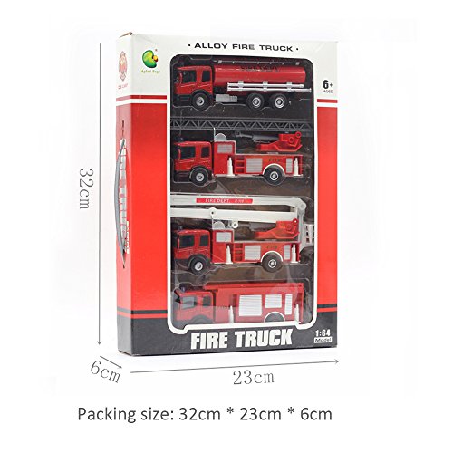 -. Binding : Toy -. Brand : si ying -. Color : Red -. EAN : 0661596996704 -. Feature : Made of Diecast Metal with Plastic Parts. / Recommended age rang 6 years and up. / Retractable Ladders and Extendable Lift. / It can stimulate kid's imagination and encourage hand-eye. / Gift box packing. Easy for your kids to play,the best choice to send kids as gift. -. IsAdultProduct : 0 -. Label : si ying -. Manufacturer : si ying -. MPN : TY15131463 -. PartNumber : TY15131463 -. ProductGroup : Toy -. ProductTypeName : TOYS_AND_GAMES -. Publisher : si ying -. Studio : si ying -. Title : Fire Engine Series Model 1:32 Fire Truck Series Car Artificial Model Toy (Pack of 4) Playset Preschool Learning for Children Toddlers Kids Gift (Gift Package) -. UPC : 661596996704