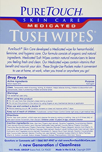 -. Title : PureTouch MEDICATED Tush Wipes for adults 24 Individual Flushable Moist Wipes/ 6 boxes144 Single-Use-Packets