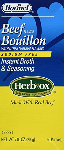 From Hormel foods; maker of the famous SPAM of our past comes this no sodium bouillon. Each packet makes 8 ounces of broth or can be used as a seasoning. The box contains 50 packets!