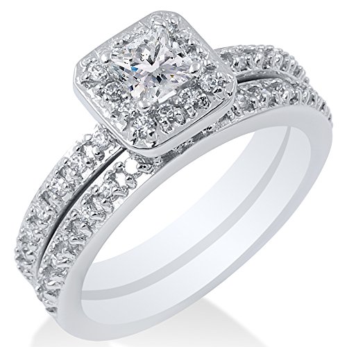 - Title : 1.25CT Pave Halo Princess Cut Diamond Engagement Wedding Ring Set 14K White Gold