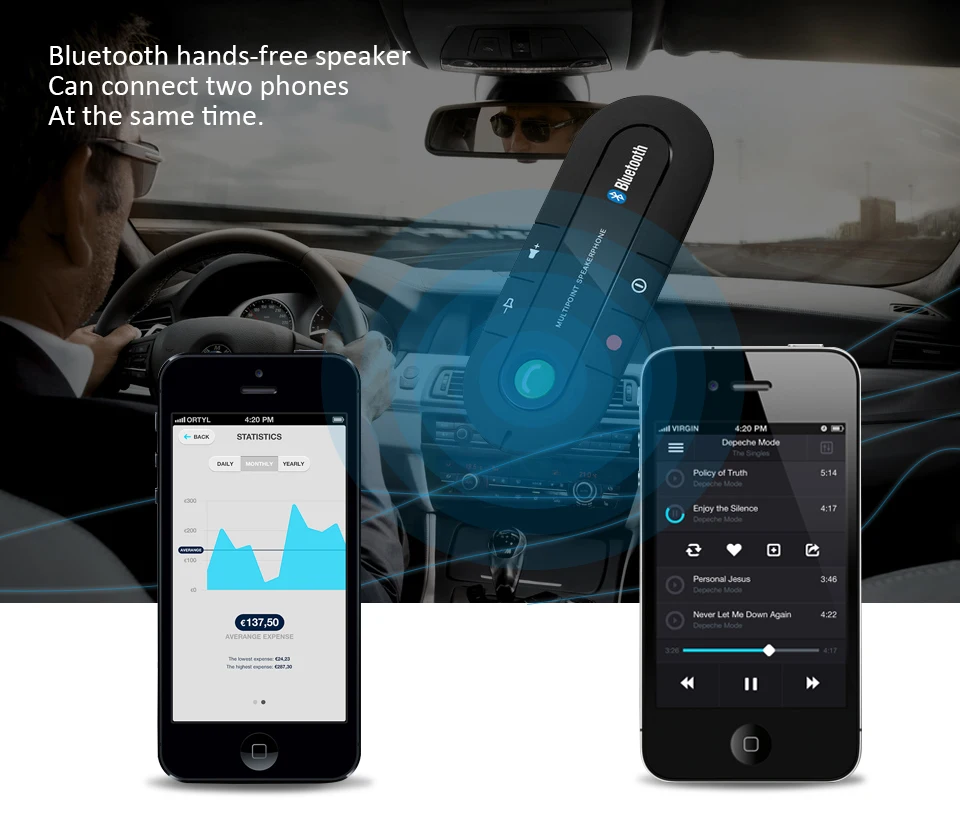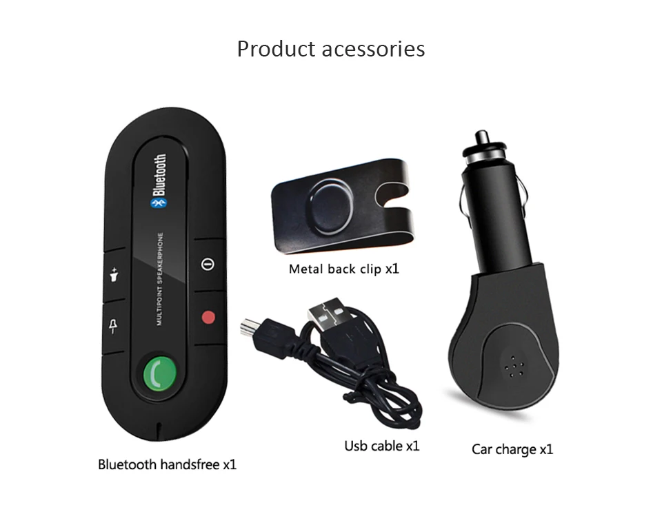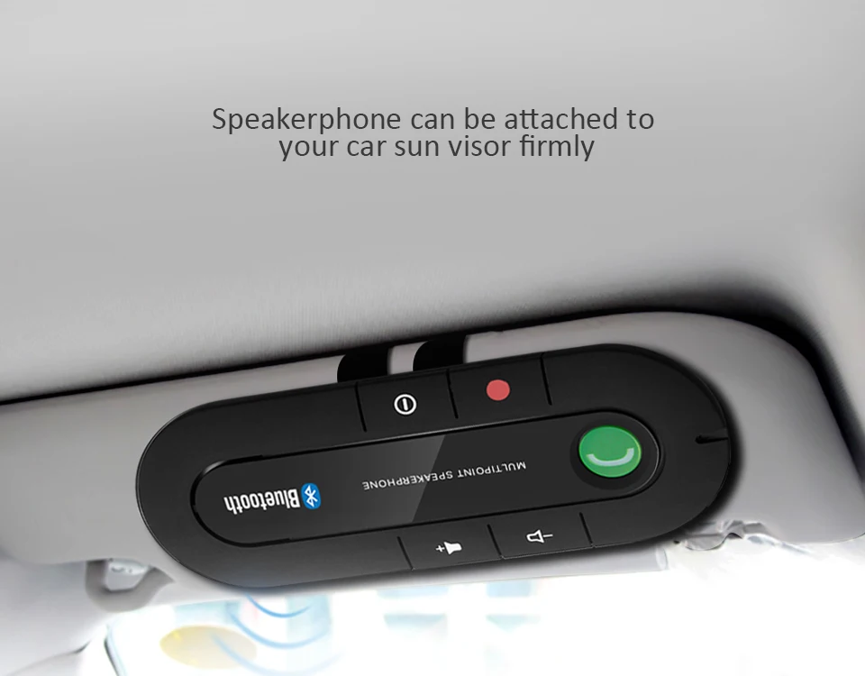 8.Built-in Powerful Magnet, it is convenient to take it off or fix it. With its Magnetic Clip, the speakerphone can be attached to your car's sun visor quickly and firmly.
