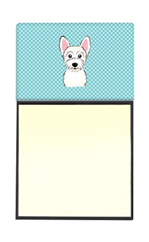 Caroline's Treasures Checkerboard Blue Westie Refillable Sticky Note Holder or Postit Note Dispenser, 3.25 by 5.5", Multicolor