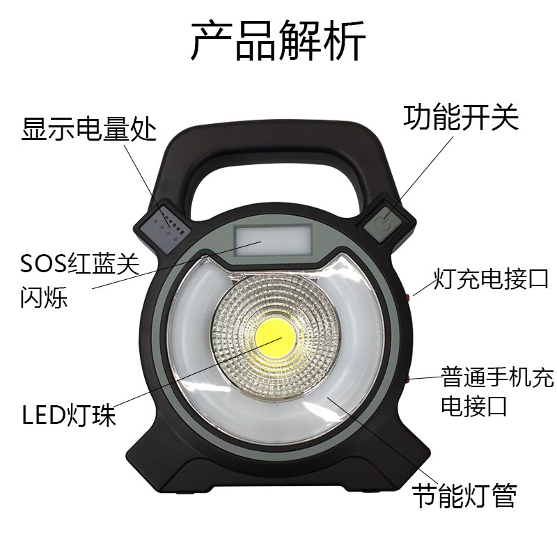 The new COB work lights can be emergency outdoor lighting, convenient charging, support USB output, do rechargeable treasure, with warning lights, COB multi-function lighting! Is your outdoor adventure, home travel is a good helper! The The