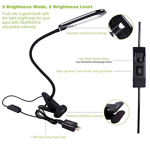OxyRead - Study, Work, Relax Are you always annoyed by those inconvenient traditional incandescent and CFL lights? Now you can expect this portable clamp light. Comes with 24 LEDs and easily controlled buttons, it emits natural, even, non-flickering bright light without ghosting. Just clip it on your working table, and tilt or swivel the gooseneck to cater for your different requirements.