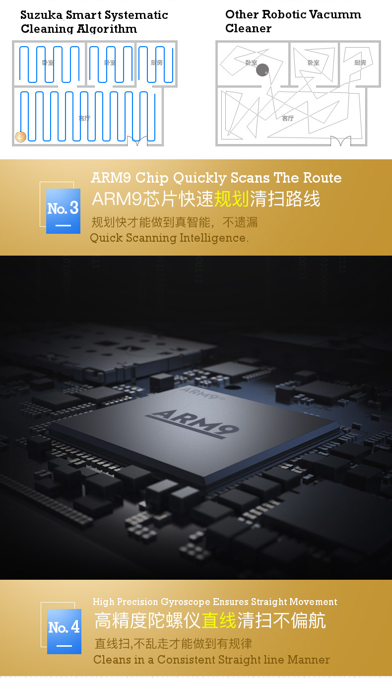 - Latest Systematic Navigation and mapping with Gyroscopic Sensors (same Navigation used in latest Lg Roboking models)