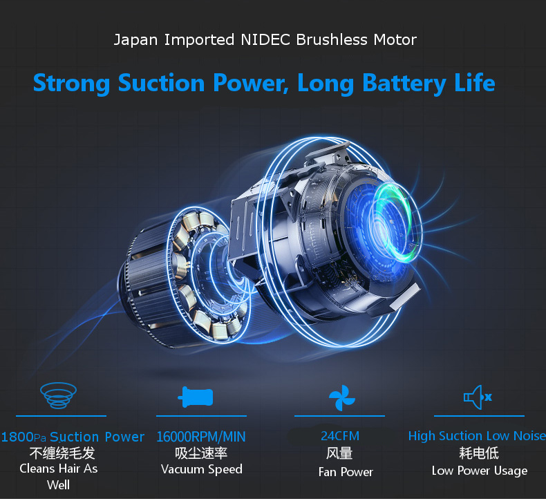 - Increased 3000Mah Lithium Ion Battery capacity for 2hr clean time