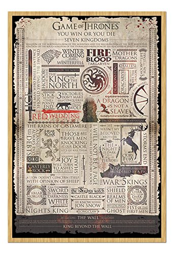 -. Title : Game Of Thrones Infographic Poster Magnetic Notice Board Beech Framed - 96.5 x 66 cms (Approx 38 x 26 inches)