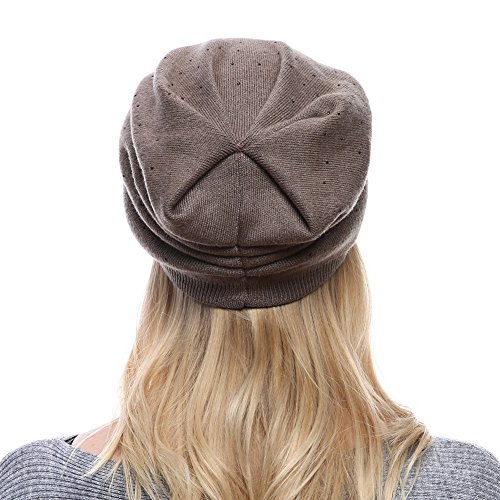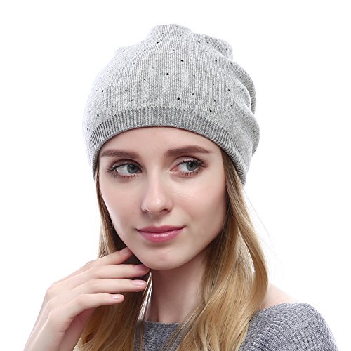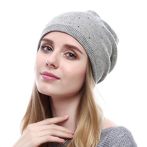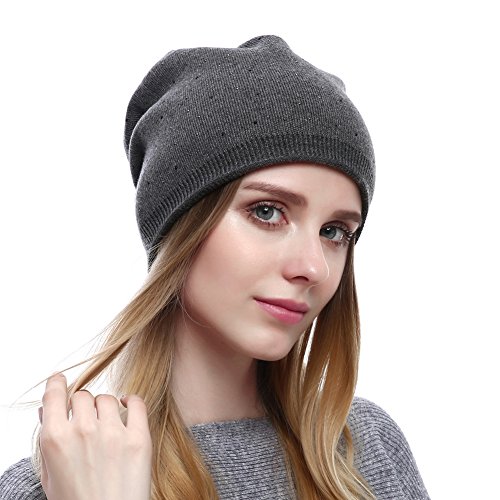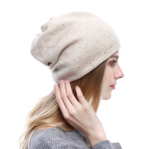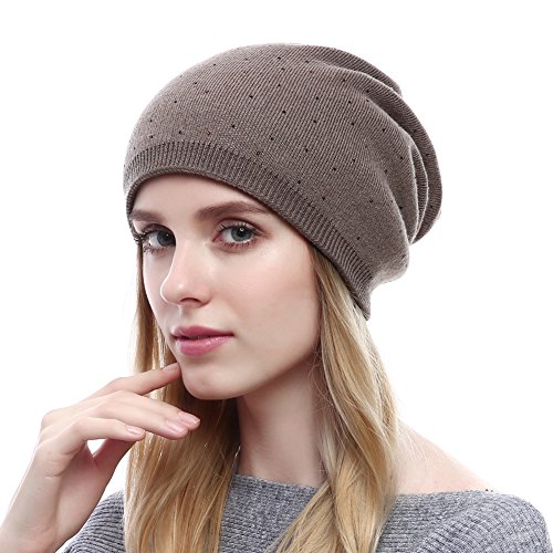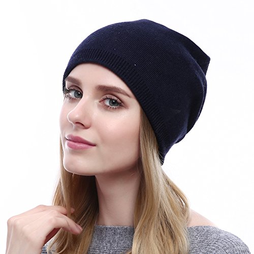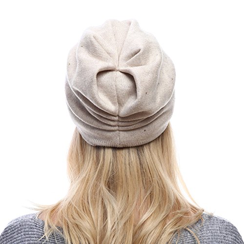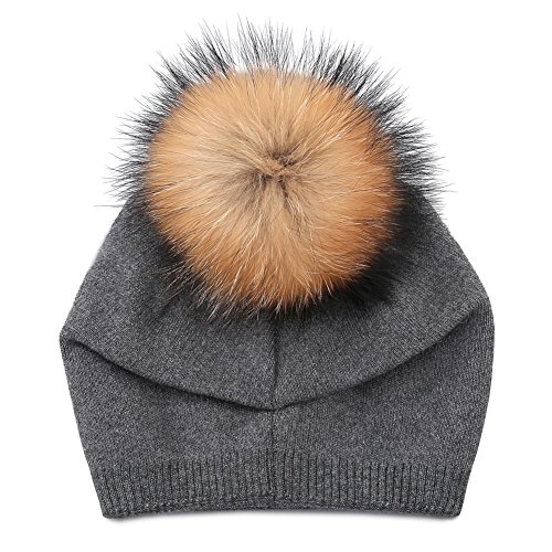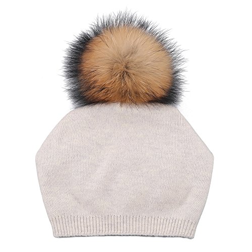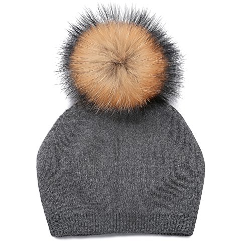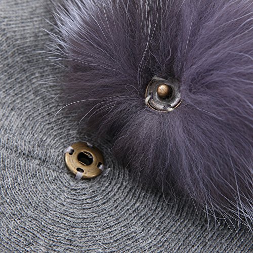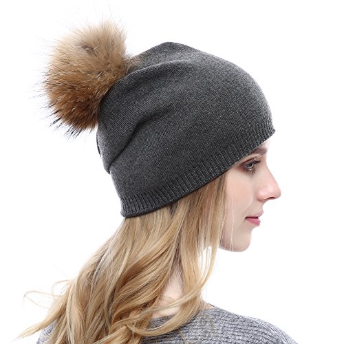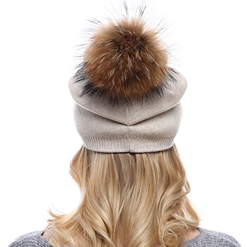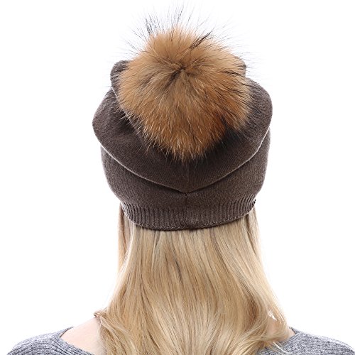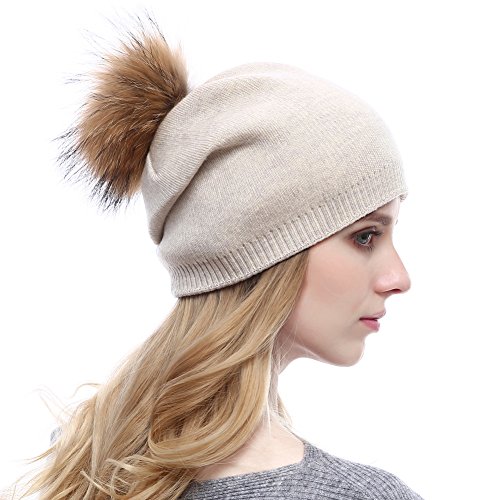 | Winter Berets for Womens Wool Beanies Knitted Cashmere Hats with Fox Fur PomPom |