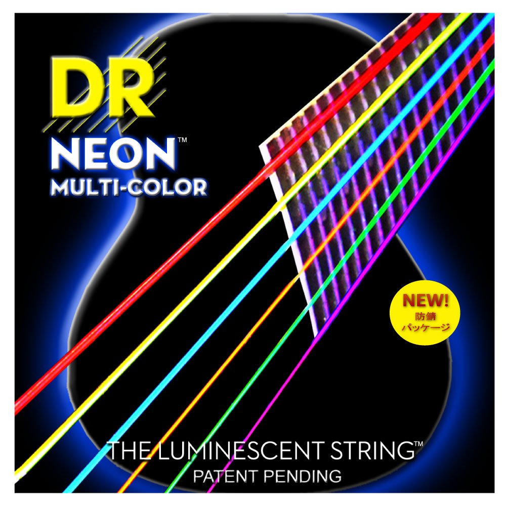 DR Strings Hi-Def NEON Multi-Color Medium Light Acoustic Guitar Strings (11-50) 2 Pack