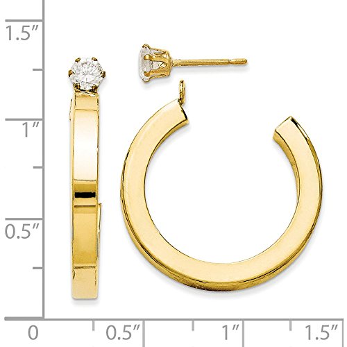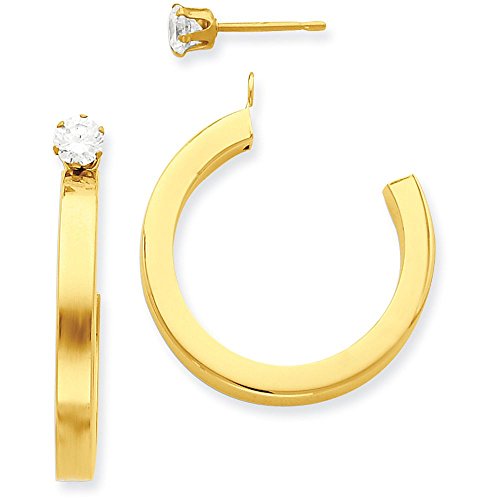-. Binding : Jewelry -. Brand : Jewel Tie -. Department : womens -. Feature : 14k Gold / 1.22in Height / A Free Pair of CZ Studs made from Surgical Steel are included / Satisfaction Guaranteed / Return or exchange any order within 30 days -. ProductGroup : Jewelry -. ProductTypeName : FASHIONEARRING -. Title : 14k Gold Polished J-Hoop Jackets for Stud Earrings (1.22" Height)