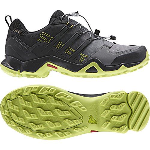 Studio : adidas Outdoor Publisher : adidas Outdoor Binding : Shoes Product Description Built for fast hiking on rugged terrain, these men's outdoor shoes are lightweight, breathable and abrasion-resistant. Featuring a durable ripstop mesh upper for breathability and lightweight, waterproof Gore-Tex lining for breathable performance, Adiprene cushioning under the heel for superior cushioning at impact and molded rubber toe cap for protection. A Traxion outsole for optimal grip in all directions, a superhigh-traction rubber outsole for optimal grip in wet conditions. Speed lacing construction for fast lacing and a snug fit with Lace Bungee stows laces to help avoid tangling. Material: Mesh, Textile, Rubber. 0