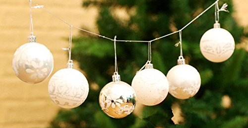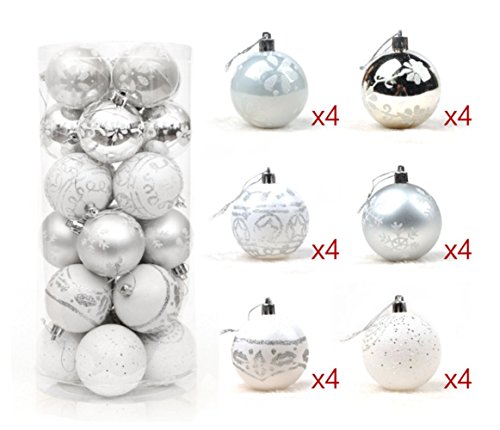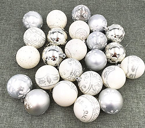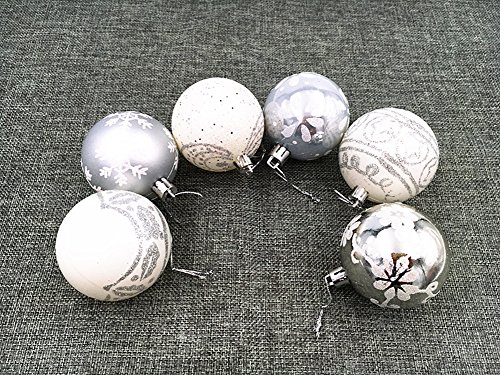 24pcs Christmas Ball Baubles,2.4" Shatterproof Assorted Painting Patterns Hang Balls Pendant for Xmas Tree decoration by Alimitopia(6cm,Silver&White)