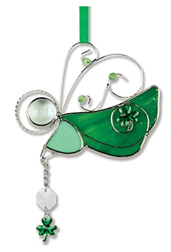 Irish Angel Suncatcher Stained Glass Ornament with Shamrock