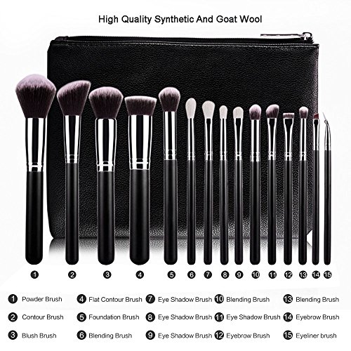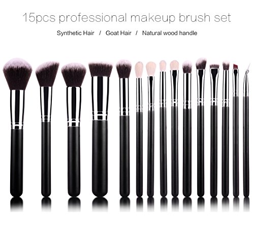 BestFire 15pcs Makeup Brushes Set Professional Goat Hair Make Up Brushes Cosmetics Foundation Blending Blush Eye Shadow Eyeliner Brushes Kit with PU...