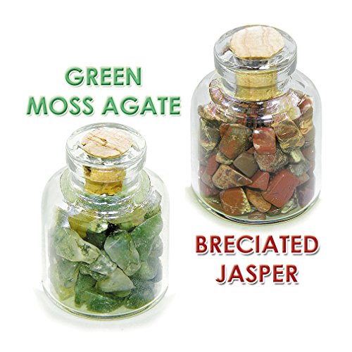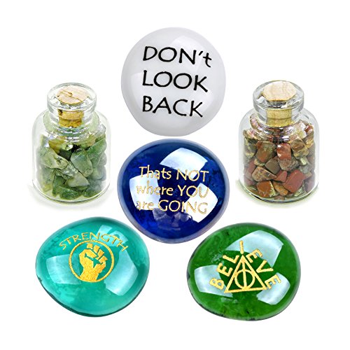 Dont Look Back Self Esteem Motivation Inspirational Amulets Glass Stones Moss Agate Jasper Bottles Set