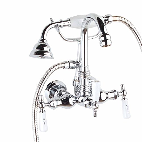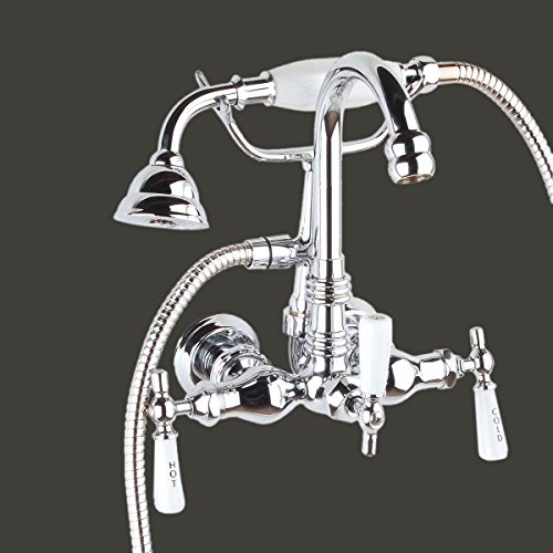 Chrome Plated Brass Faucet Hand Shower 56" Hose Clawfoot Tub Complete Set Gooseneck Porcelain Accent