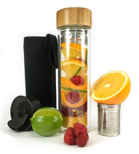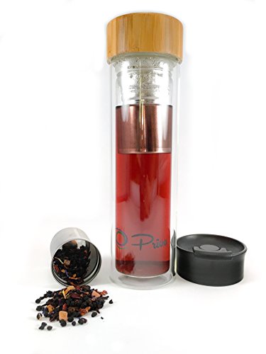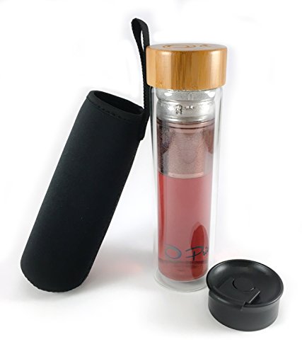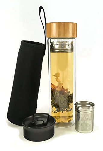 Portable Bamboo Tea Infuser Glass Tumbler and Water Bottle - Innovative Container for Fruit, Blooming Tea, Loose Leaf Tea, Coffee, and Detox Tea