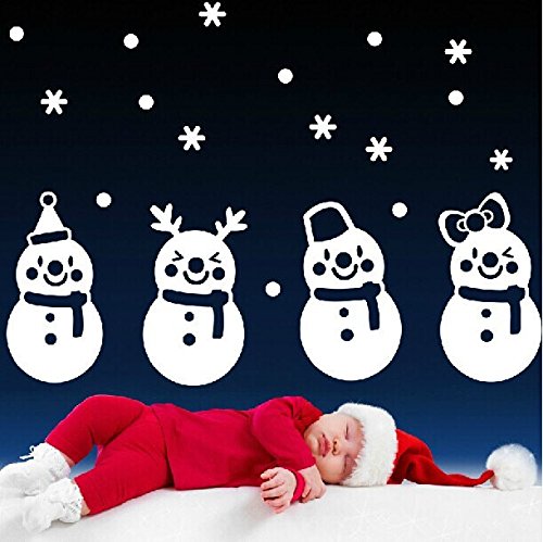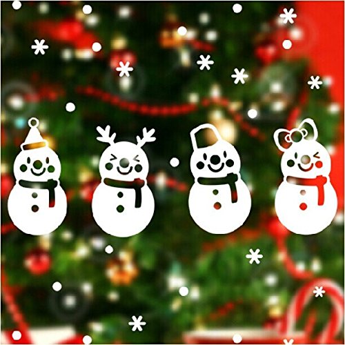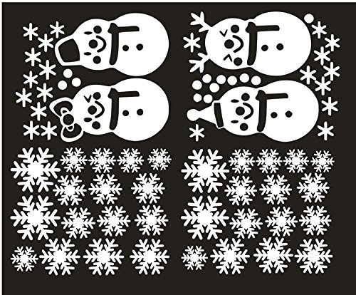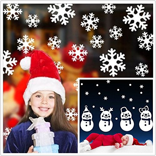 2-Pack Christmas Snowman +Snowflake Wall Decoration Sticker Merry Window Clings- White Christmas 4 Snowman and Muliti Size Snowflake Glass Window Decor Sticker- Shop Xmas Window Decals (White)