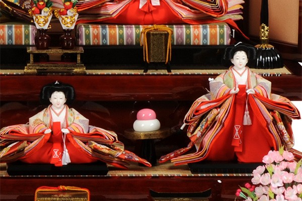 親御様、お子様、縁者様の健康と発展を願いながら職人が丁寧に仕上げた雛人形飾り/雛人形が初節句のお祝いにはなを添えます。