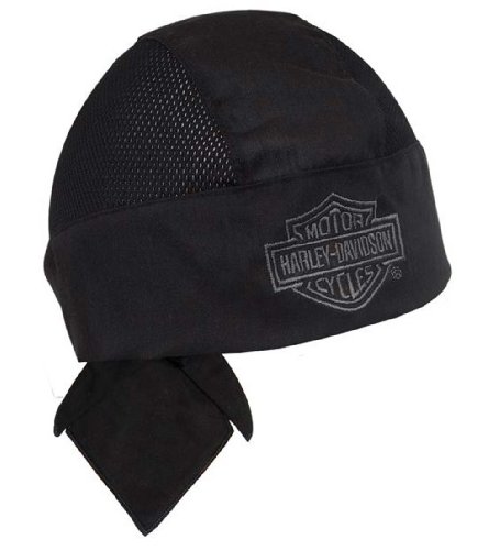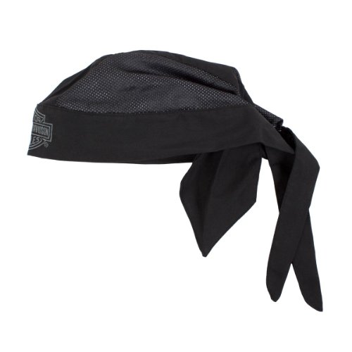 Product DescriptionHarley-Davidson head wrap. Air flow Bar Shield black head wrap. Made of polyester with mesh top.0